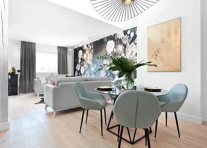 Эти апартаменты площадью 99 м^2 находятся в 850 метрах от пирса Сопота и в 10 минутах езды от парка Оливский. От апартаментов можно за 5 минут дойти до центра Сопота. До Северного парка можно доехать за несколько минут.